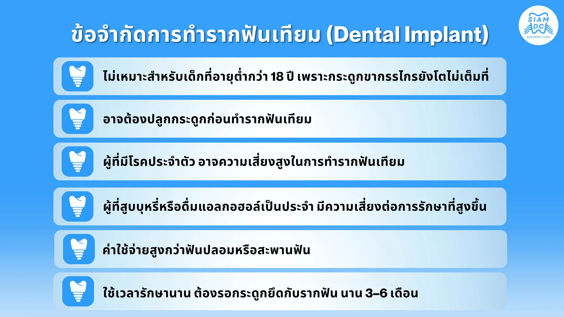 ข้อจำกัดการทำรากฟันเทียม (Dental Implant)