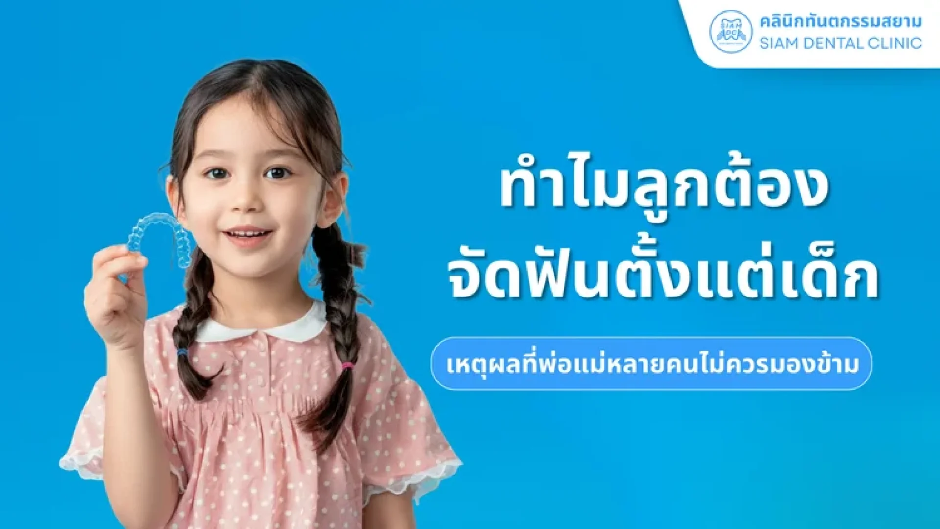 คุณพ่อคุณแม่หลายท่านอาจสงสัยว่า ทำไมลูกของเราถึงต้องเริ่มจัดฟันตั้งแต่ยังเด็ก ทั้งที่ฟันน้ำนมยังอยู่ครบ หรือบางคนอาจคิดว่ารอให้ฟันแท้ขึ้นหมดก่อนแล้วค่อยจัดฟันทีเดียวไม่ดีกว่าหรือ? บทความนี้ Siam Dental Clinic จะมาไขข้อข้องใจให้กระจ่าง พร้อมทำความเข้าใจถึงประโยชน์ของการจัดฟันในวัยเด็ก หรือที่เรียกว่า "การจัดฟันระยะที่ 1" (Phase 1 Orthodontics) เพื่อสุขภาพช่องปากที่ดีและการเจริญเติบโตที่เหมาะสมของลูกน้อย