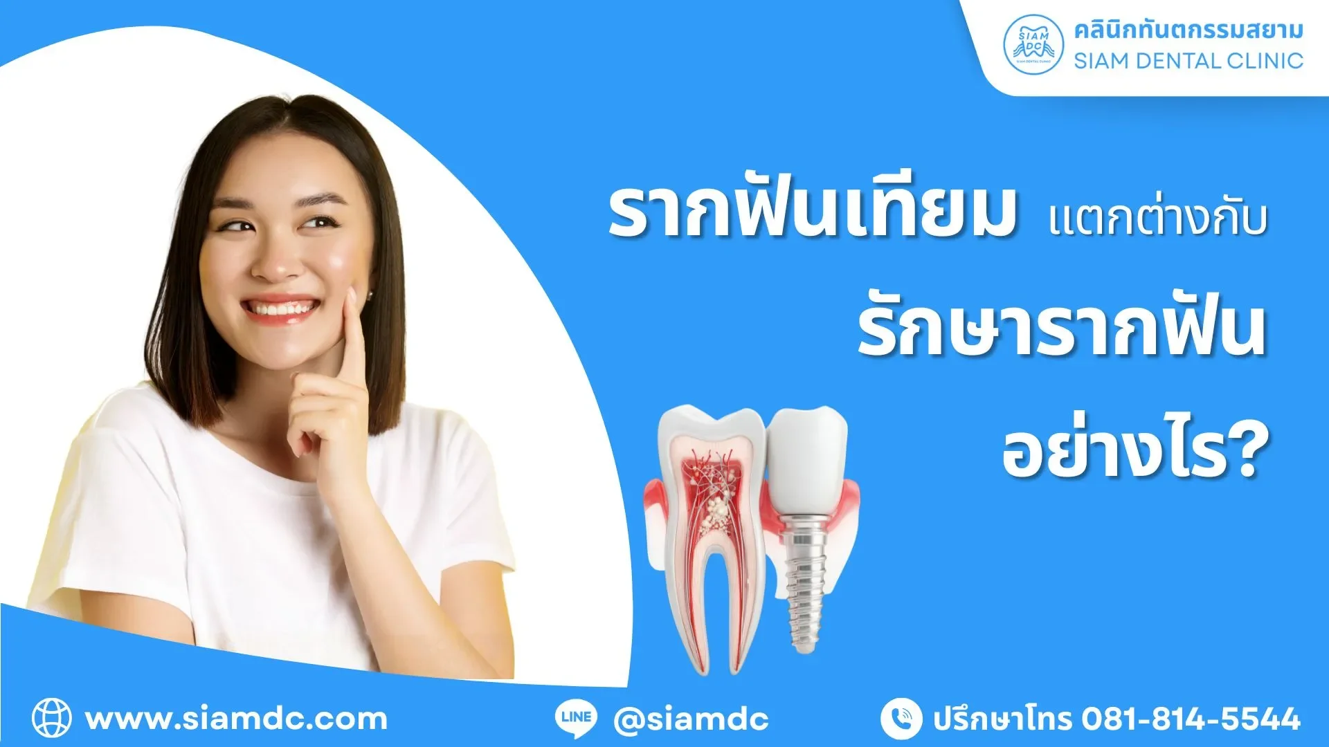 คนส่วนใหญ่มักสับสนความแตกต่างระหว่าง “รากฟันเทียม (Dental Implant)” และ“รักษารากฟัน (Root Canal Treatment)” แม้ว่าทั้งสองคำจะมีการกล่าวถึง "รากฟัน" แต่ในความเป็นจริงแล้ว ทั้งสองเป็นกระบวนการทางทันตกรรมที่มีวัตถุประสงค์ แนวทาง และผลลัพธ์ที่แตกต่างกันอย่างสิ้นเชิง การทำความเข้าใจความแตกต่างนี้จะช่วยให้คนไข้สามารถตัดสินใจเลือกแผนการรักษาที่เหมาะสมที่สุดสำหรับปัญหาสุขภาพช่องปากของตนเองได้หัวข้อที่น่าสนใจ